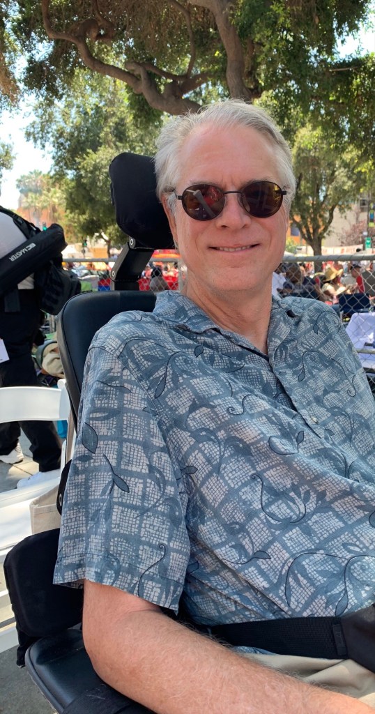 In August of 2019, I was in the LazyBoy on Wheels full time, although I could still use a walker for short distances and, conveniently, bathroom grab bars. This last skill was necessary because I could still drink beer, and SummerFest just isn’t SummerFest without copious amounts of Gordon Biersch’s finest lagers, especially for breakfast. My bathroom skills, however, terminated when it came time to prepare for exit by pulling up my pants. This is where St. Laurel came in, literally. I took particular delight at the look on the faces of the dudes standing at porcelain attention as St. Laurel walked in and led me to the nearest accessible stall.